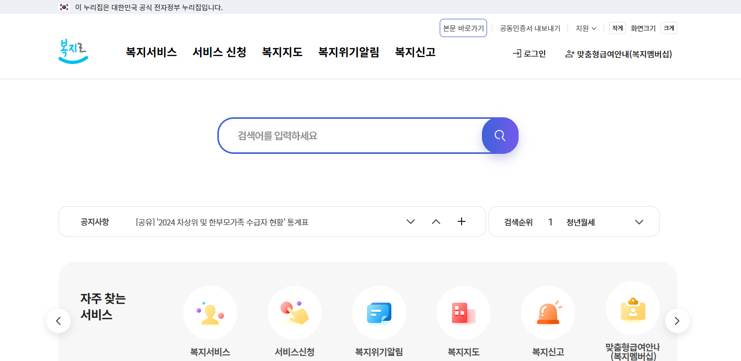 - 복지로 홈페이지 접속: www.bokjiro.go.kr