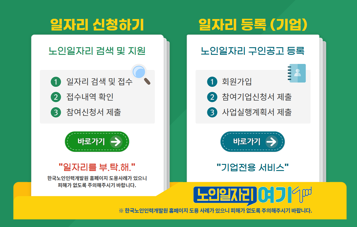 - 일자리 등록: 노인일자리 구인공고 등록 서비스
